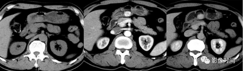 异位胰腺,胃窦部卵圆形病灶,鸿沟明晰,密度均匀,呈显着强化,强化程度高于正常胰腺本质,病理示病灶成分以腺泡安排为主。
