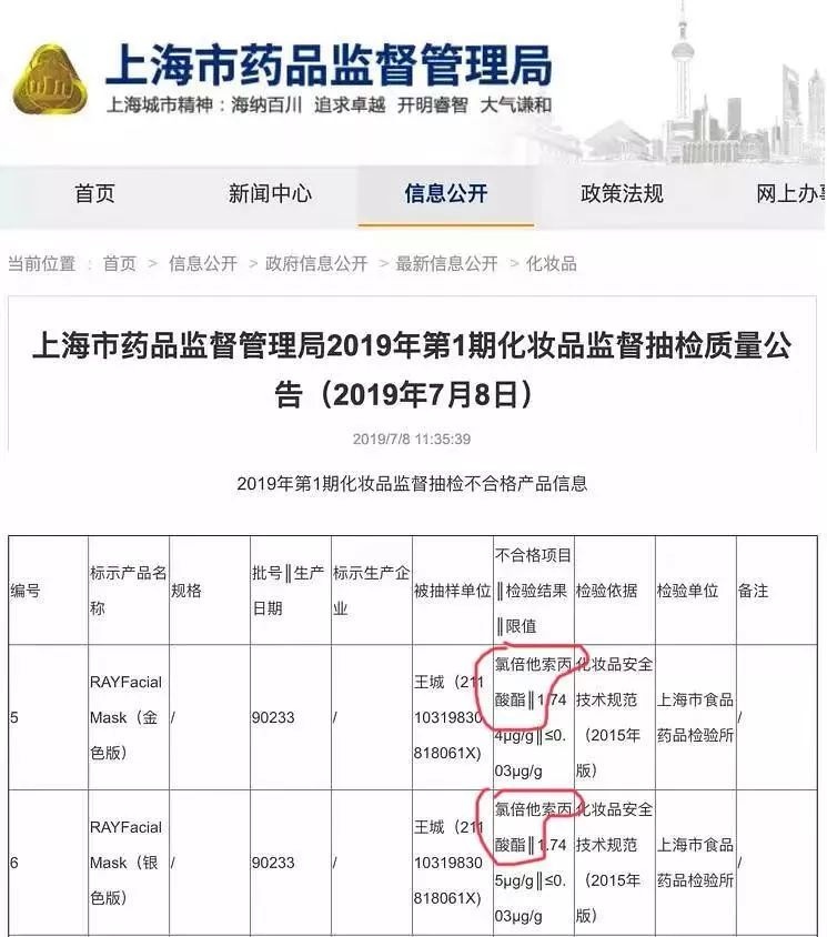 最新监测出大火的RAY面膜含有氯倍他索丙酸酯,此为糖皮质激素。