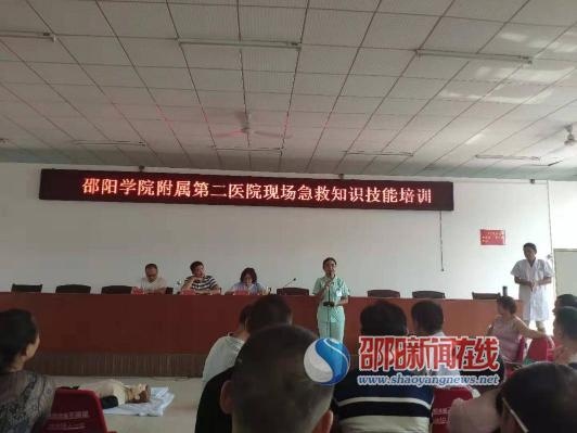 邵阳学院隶属第二医院急诊科主任李开奇结合日常日子和突发事件进行了理论授课,对“溺水急救”“心肺复苏”“气道异物梗阻”等急救常识技术的基本原则、适用状况、操作方法等内容进行了具体解说。由李佳护士长等医护人员现场进行“徒手心肺复苏”演示,并分组进行实际操作练习,让参培人员当场体会了胸外心脏按压及人工呼吸法,加深了练习形象。