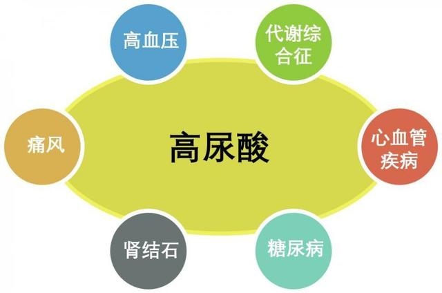但是,临床研讨发现,高尿酸血症不只是是痛风的病因,还与多种疾病相关。高尿酸血症与心脑血管疾病、内分泌疾病和缓慢肾脏疾病等密切相关,是这些疾病发作和开展的独立风险要素。