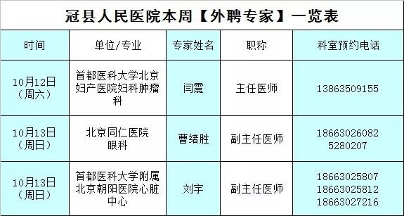 原标题:【名医来了】冠县人民医院外聘专家公示