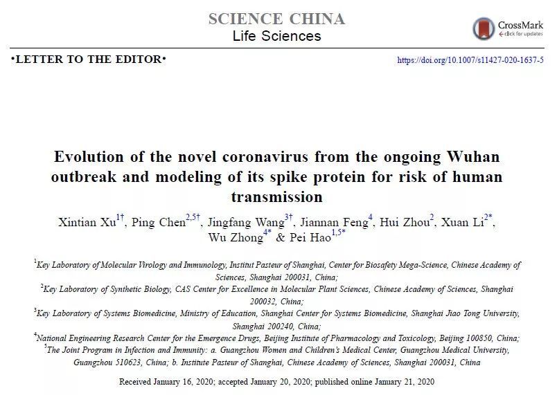 上面榜首个研讨是来自我国科学院上海巴斯德研讨所郝沛研讨员、军事医学研讨院国家应急防控药物工程技术研讨中心钟武研讨员和中科院分子植物杰出中心组成生物学要点实验室李轩研讨员协作,在SCIENCE CHINA Life Sciences在线宣布了题为《Evolution of the novel coronavirus from the ongoing Wuhan outbreak and modeling of its spike protein for risk of human transmission》的研讨论文,该研讨剖析论述了引起近期武汉区域肺炎疫情迸发的新式冠状病毒的进化来历,及与导致 2002 年广东「非典」疫情的 SARS 冠状病毒、「中东呼吸综合征」MERS 冠状病毒的遗传进化联系。