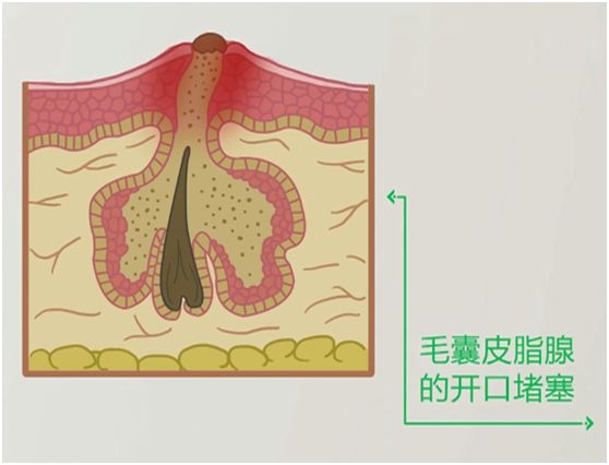 毛囊皮脂腺发育后,会排泄许多皮脂,很简单构成皮脂腺开口阻塞。