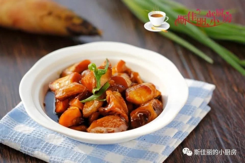 制造:春笋清洗洁净,切成滚刀块;烧锅水放入少量盐,将春笋块煮上3分钟;热锅凉,下入葱姜和干辣椒煸炒出香味后将其捞出;放入春笋翻炒;参加适量的黄酒、糖、蚝油和生抽,加盖焖煮上3分钟,再大火收汁即可。