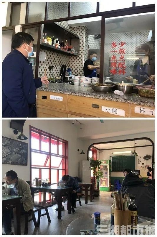 上午8点,记者以顾客身份来到坐落黄兴北路上的工农兵米粉店。虽然门外张贴着“进门要戴口罩、进店要测体温”等温馨提示,但从进店点餐到用餐脱离的20分钟内,记者未被要求丈量体温。期间,一名未佩带口罩的顾客也成功进店用餐。
