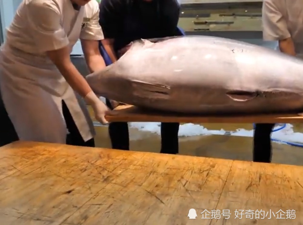 不过捕捉上来后,切割但是个技术活,但是在娴熟的师傅面前小菜一碟,只见师傅先把肚子剖开,再切开头部一大块肉,便利取出用于冷藏的冰块,接着用锯先做大块别离,再用较小的刀处理细节,忙活一番后一块块鲜美的鱼肉,就切割完结啦。