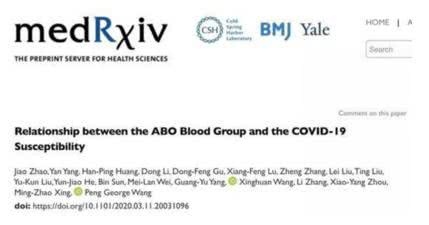 3月17日,上海交大、武汉中南医院、武汉金银潭医院等8家单位在预印本渠道medRxiv宣布论文,研讨结果显现:O型血对新冠肺炎相对不易感,危险较低;A型血对新冠肺炎相对易感,危险也较高。