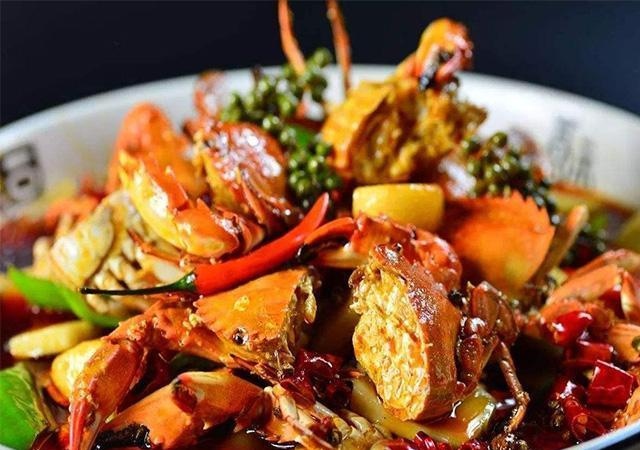 8. 然后再把炸好的螃蟹倒入锅中,纵情地翻炒,让螃蟹均匀入味,螃蟹再炒个8分钟左右就能够出锅装盘了。
