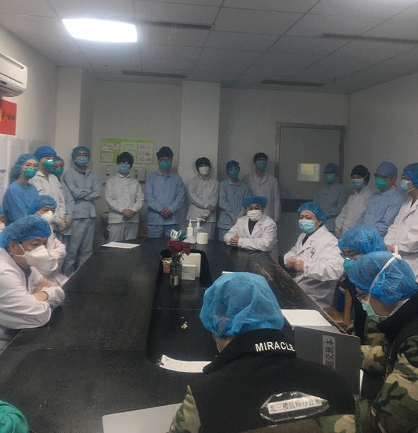 今日接班的人比较多,究竟多了咱们一个小组的人员,还有金银潭医院的黄朝林副院长和他们的王书记也到了,一同参与咱们的接班,商议后续的交代事宜。看着咱们组理应昨日夜班却“矿工”(咱们组没患者了,不需求再值勤)的汪医师仔细地坐在接班桌前说着“北三楼第一组患者数0,危重症0”的时分,我的心里充满了骄傲感。咱们组提早完结使命!