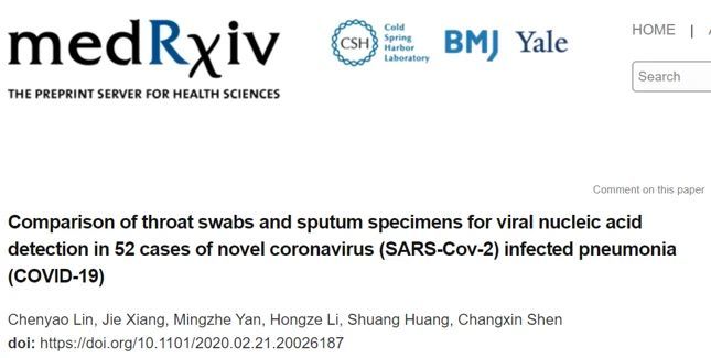 相同的,2月23日在medRxiv预印本平台上宣布的一项武汉大学中南医院与武汉市金银潭医院触及54例病例的文章也指出,与咽拭子样本比较,经过痰液样本进行2019-nCoV检测更精确、快捷。