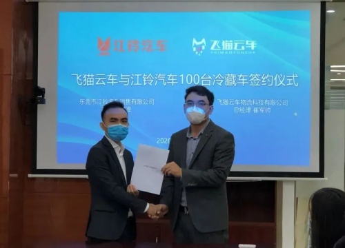 3月2日上午,飞猫云车与江铃轿车签定收购协议,收购100台江铃轻卡顺达宽体气刹车型,用于冷链运送。