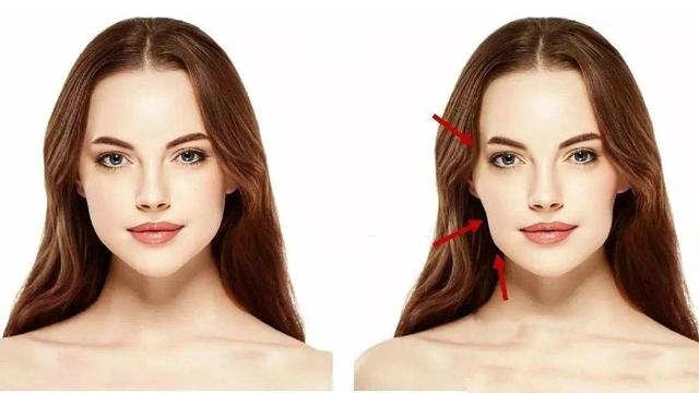 两凹一凸(脸颊及太阳穴洼陷,颧骨凸出),面部本来柔滑的线条或许会变成多边形。