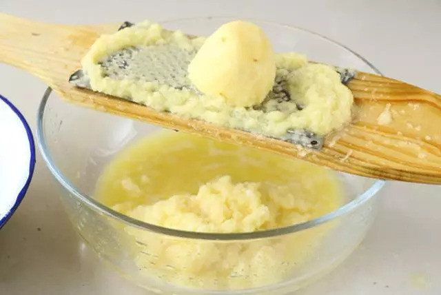 马铃薯研磨器是一块铁,戳了许多像一个钉子孔的巨细,家里的研磨器是我在网上买的。