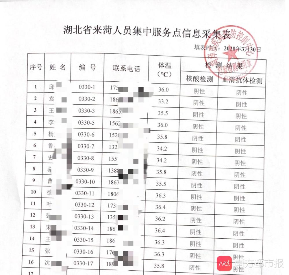 在《湖北省来菏人员集中服务点3月30日核酸检测结果》公告中,公布了被测人员的姓名、手机号码、体温、核酸检测结果和血清抗体检测结果;在《湖北省来菏人员集中服务点3月31日核酸检测结果》公告中,公布了被检人员的姓名、身份证号、手机号码、核酸检测结果和血清抗体检测结果;在4月1日以后的公告中,被测人员的姓名、身份证号、手机号码等均作了打码处理。