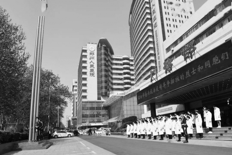 全国哀悼日,郑医门诊广场,下半旗,鸣笛,咱们用庄重、庄严的典礼,祭拜一切在疫情中献身的勇士和去世同胞,思念为抗击疫情献出生命的白衣战士,表达对一切生命的尊重与敬仰。