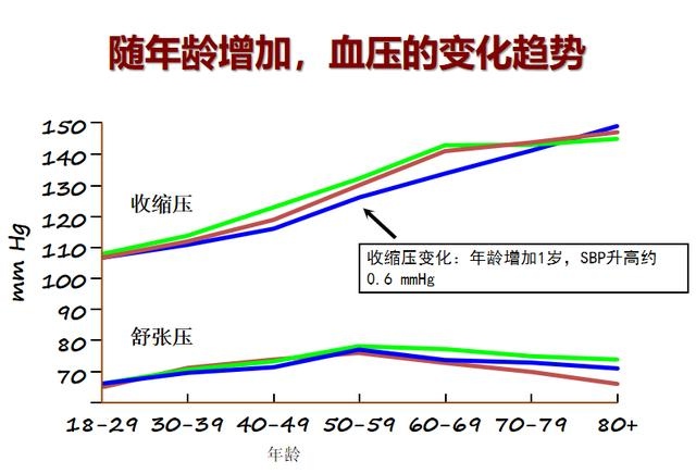 年龄增加1岁,收缩压升高约0.6 mmHg