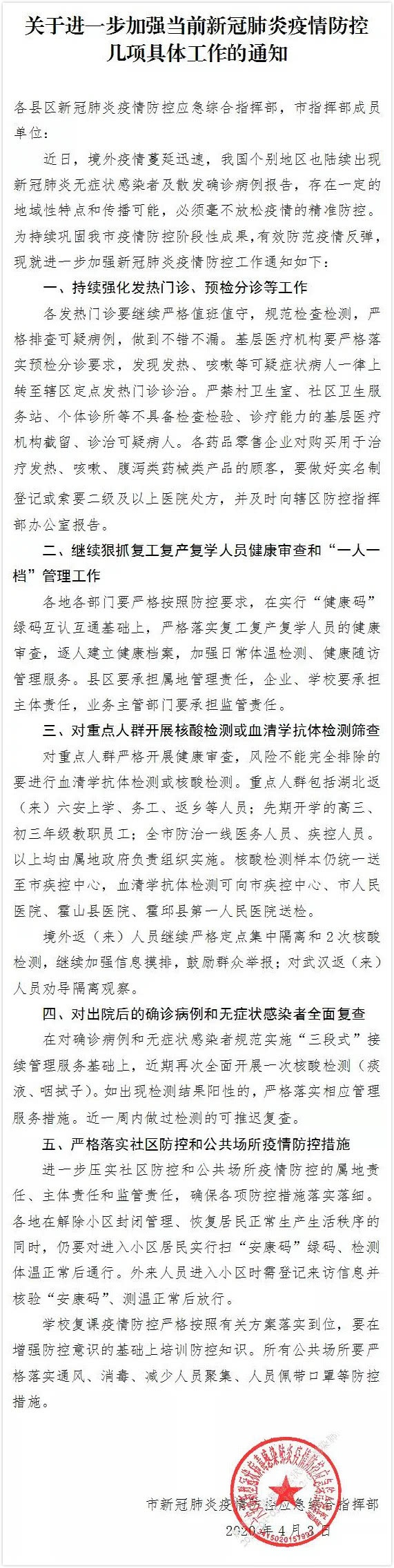 安徽六安发布关于进一步加强当时新冠肺炎疫情防控几项具体工作的告诉,告诉称,全面复查出院后的确诊病例和无症状感染者。