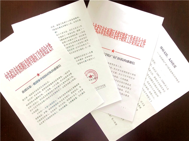 近来,我院收到中共武汉市东西湖区将军路街作业委员会以及马池墩社区居委会的感谢信。信中对我院第一批国家援鄂中医疗队队员在抗击疫情的战役中充沛的发挥中医药特征,救治当地患者,为当地社区疫情防治作业所做出的尽力表示感谢。