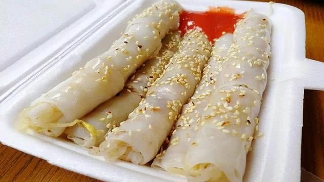 猪肠碌表层是一层米浆皮,中心调配河粉、豆芽,还有一些配菜,然后卷起成圆条状,外形酷似猪肠,因而而得名。刚咬下去时,触摸的表皮十分滑嫩,接着里边的豆芽、河粉和配菜各有不同的口感中和在一起,豆芽略带嚼劲,河粉又分散了豆芽的劲道,韧中带点软,配菜和芝麻在中心不断传输香气,让一根简略的猪肠碌散发出层出不穷的香味和口感。