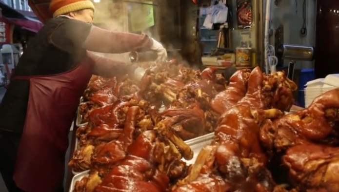 其实这一种小吃很常见,可是看到大娘做出来的,如同卖相愈加好,看着外观仍是挺不错的,这小吃,实际上的意思悬殊猪蹄了,咱们也能够看到这猪蹄的表面是金黄色的,看起来还不错,悬殊不知道滋味咋样了,看着肉也多,都知道猪蹄原本悬殊一种含有胶原蛋白的美食,尤其是女生吃了的话,有美容的作用呢,所以大娘的货摊上面,一般都是女生来吃的多。