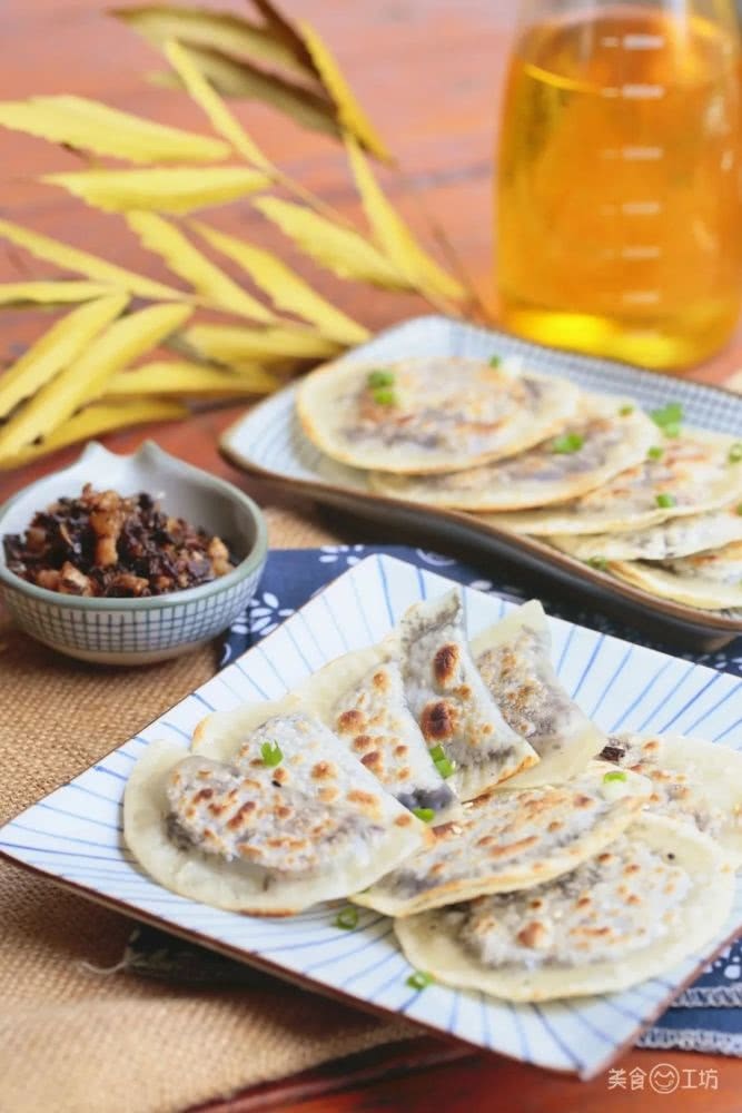 8.将做好的饼放入不粘平底锅,开小火,烙至双面金黄脆即可(假如馅里有肥肉,烙的时分会渗出,所以平底锅能够不刷油)。