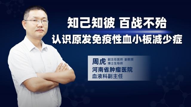 大河新健康融媒体渠道联合上海报业集团旗下“海上名医”渠道,特邀河南省肿瘤医院血液科副主任周虎,带来《知己知彼,百战不殆:知道原发免疫性血小板削减症》视频直播。