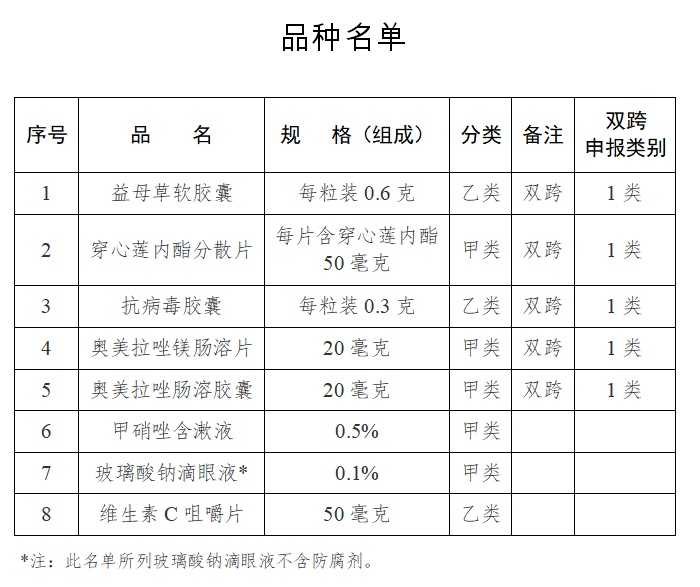 根据《处方药与非处方药分类管理办法(试行)》(国家药品监督管理局令第10号)的规则,经国家药品监督管理局安排证明和审定,益母草软胶囊等8种药品由处方药转换为非处方药。种类名单及其非处方药说明书范本同时发布。