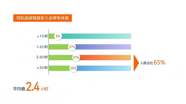 ● 作息与休息:65%的司机至少连续驾驶2小时以上才停车休息,仅8%能在1小时内主动休息,久坐、憋尿因频繁接单或难以避免。