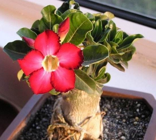 沙漠玫瑰喜欢炎热干燥的气候,每天需要充足的光照,同时一点也不耐阴。适宜生长在疏松透气的沙质土中,对肥料的需求不大,同时比较怕冷。
