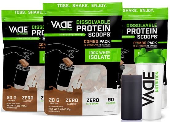 Vade Nutrition公司位于密歇根州,由运动员夫妇Joe和Megan Johnson于2016年创立,该公司推出的便携式可溶性蛋白粉Scoops 很快成为主打产品。据了解,这款产品的便携之处在于它每份的形状和大小都宛若豆荚,人们可以提前将其装在小杯中,饮用时只需要加水摇晃溶解即可,在外锻炼时也可以随时随地使用。
