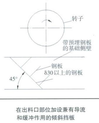 一般来说,转子下面的区域密封不好是破碎车间内扬尘的主要原因之一。建议在出料口部位加设兼有导流和缓冲作用的倾斜挡板,具体操作见下图:
