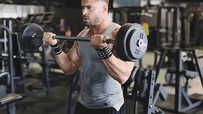 第四个动作,杠铃弯举。