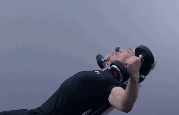 第一个动作,哑铃卧推动作。